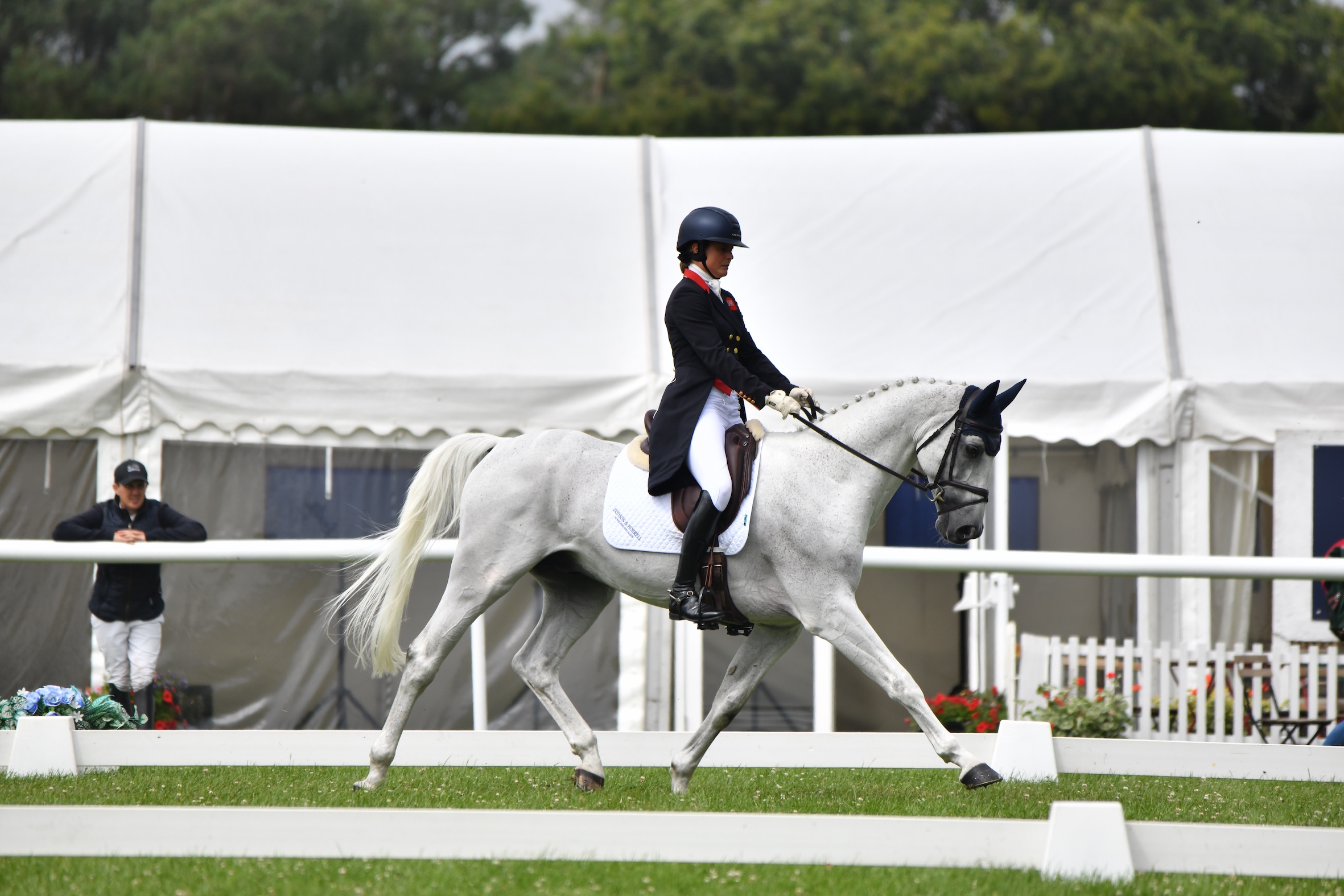 Piggy posted an exceptional dressage mark of 19.8 aboard Jayne McGivern’s lovely grey stallion Halo to overtake Oliver Townend and Cooley Rosalent, who go into Saturday’s showjumping and cross-country in second place on 23.9. Izzy Taylor and Barrington Alice are third on 24.5.